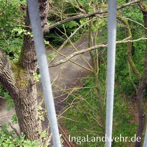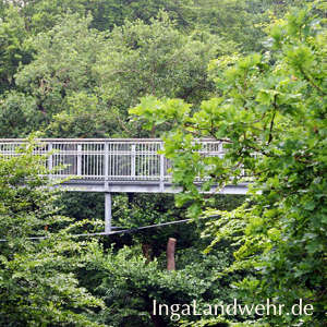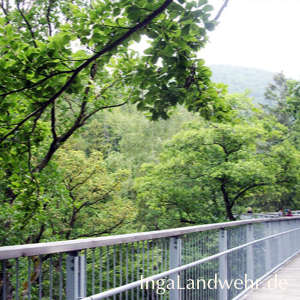 Dank der Sommerferien konnte ich das Niedersachsenticket schon für den Zug um 8:17 Uhr benutzen. Mit einem Umstieg in Hannover fuhr der Zug pünktlich (ja, das kann auch passieren …) um 11:06 Uhr im Bahnhof von Bad Harzburg ein. Von der Website wusste ich, dass der Baumwipfelpfad in Bad Harzburg fußläufig erreichbar und in der Nähe des Kurparks ist. Also schlenderte ich gemächlich durch die schattige Fußgängerzone des Kurortes. Immer begleitet vom Plätschern der Radau, die durch den Ort fließt.